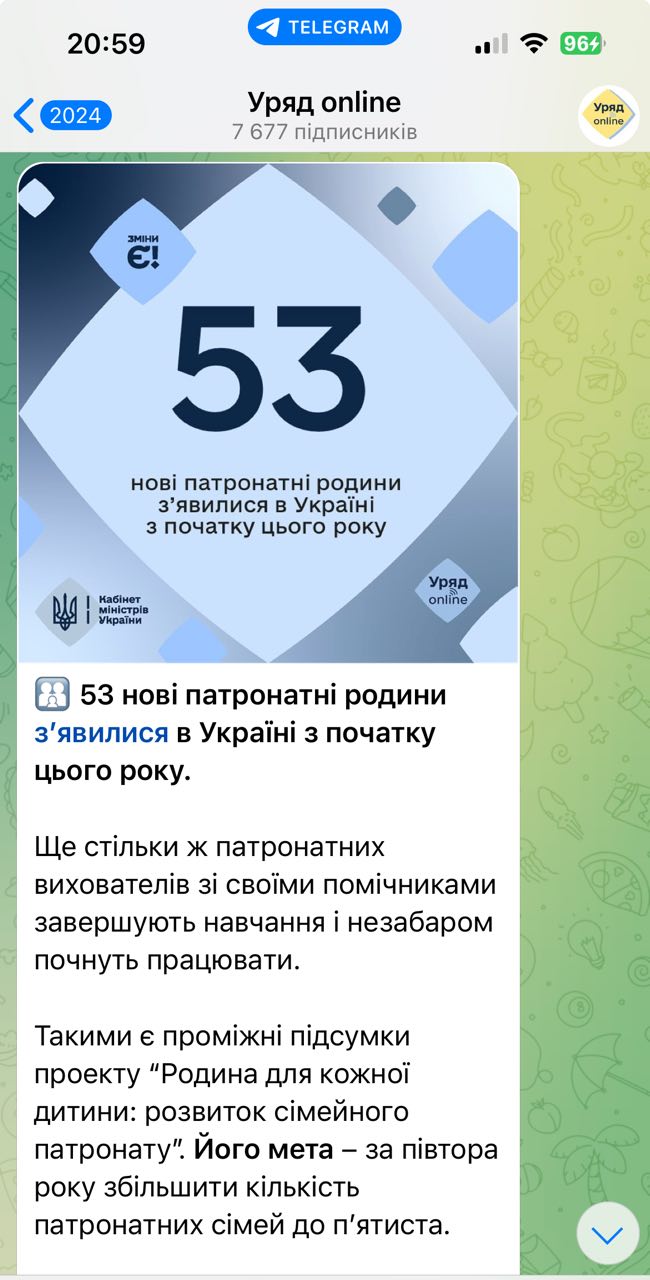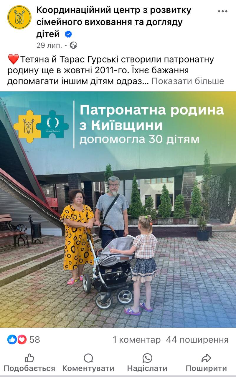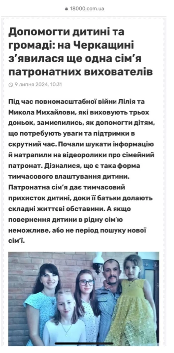 З початку року було створено 85 патронатних родин. Загалом в Україні зараз працює 363 патронатні родини, яка дає тимчасовий прихисток і турботу 743 дітям.